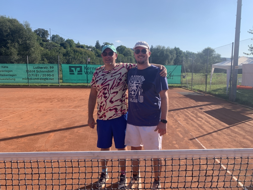 Später trafen Johannes Stock und Philmon Kollas in einer Neuauflage des 2022er-Finals aufeinander. Beide rackerten sich in einem tollen Spiel ab, bis die Shirts sandrot und die Knie aufgeschürft waren. In einer wendungsreichen Partie verteidigte am Ende Johannes Stock mit 7:5 und 6:4 seinen Titel als Vereinsmeister. Für diese Leistungen gab es bei der anschließenden Siegerehrung die verdienten Pokale überreicht von Jörg Klein (1. Vorsitzender) und Heide Marte-Lowe (2. Vorsitzende). Auch die Gewinner des Schleifchen- Turniers, Alex Baur und Bärbel Roller, wurden geehrt.