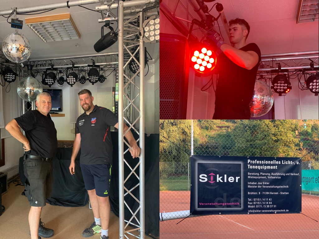 Das Finale des Finaltags stieg im Clubheim. Von der Discokugel bis zur Nebelmaschine war alles geboten, was das Tennis-Clubbing-Herz begehrt. Für Partystimmung sorgten unsere TCSR-DJs Sebastian Stadelmaier und Jens Sikler sowie diverse Long Drinks an der Bar. Herzlichen Dank für einen unglaublichen Tag: an alle, die bei der Orga mitgewirkt haben, insbesondere an Jens und Sebastian. An alle Mitglieder für eure Beiträge in Form von Kuchen & Salaten, für Bewirtung oder Auf- und Abbau, an alle Gäste von Nah und Fern und besonders auch an Joe Sikler für das fantastische Licht- und Tonequipment.